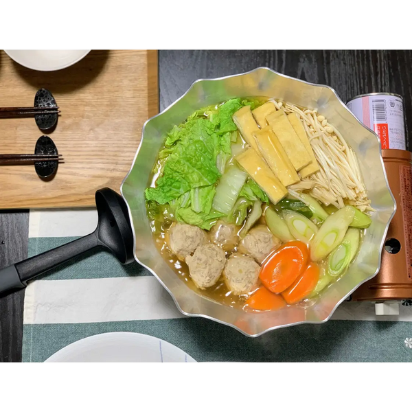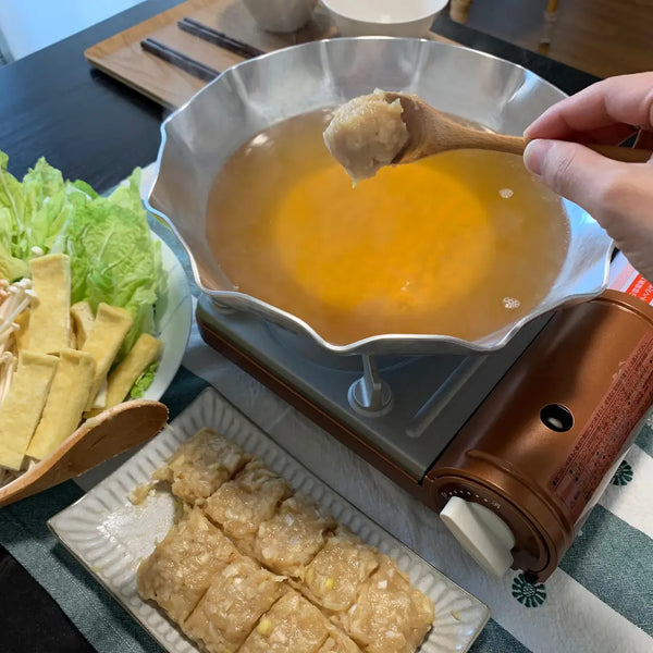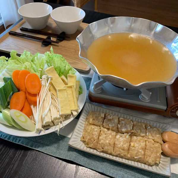 A common recipe for chanko nabe consists of chicken meatballs, napa cabbage, Japanese leek, and mushrooms cooked in a chicken-based broth. The sight of a family eating around the same nabe (hotpot) is a typical Japanese winter event. It is common to gather around and cook while eating nabe at the dining table using a tabletop gas stove or an electric pot. If you do not have a portable gas stove or electric pot, you can make chanko nabe using a regular kitchen stove and serve each portion individually.