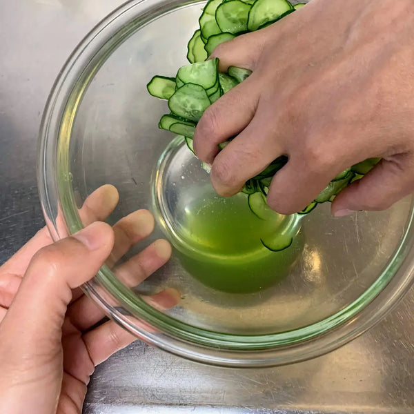 It is recommended to eat this dish as soon as possible after you make it or at least on the day of preparing it, as the water of the cucumbers will seep out and cause the flavor of the salad to weaken. A fresh cucumber sunomono is very enjoyable especially when it’s hot outside!