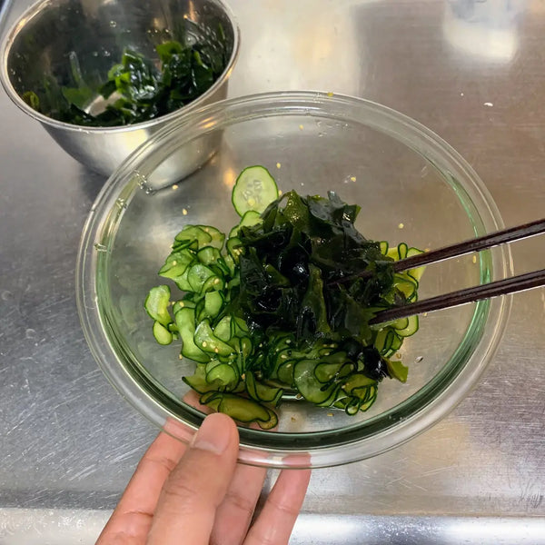 Today, we will introduce a cucumber sunomono recipe including wakame seaweed. You can also add other ingredients like boiled octopus pieces or canned tuna to bulk up the salad if you wish. We hope that you will enjoy our simple recipe, and try it out for yourself too. Let us know in the comments how you liked this cucumber salad!