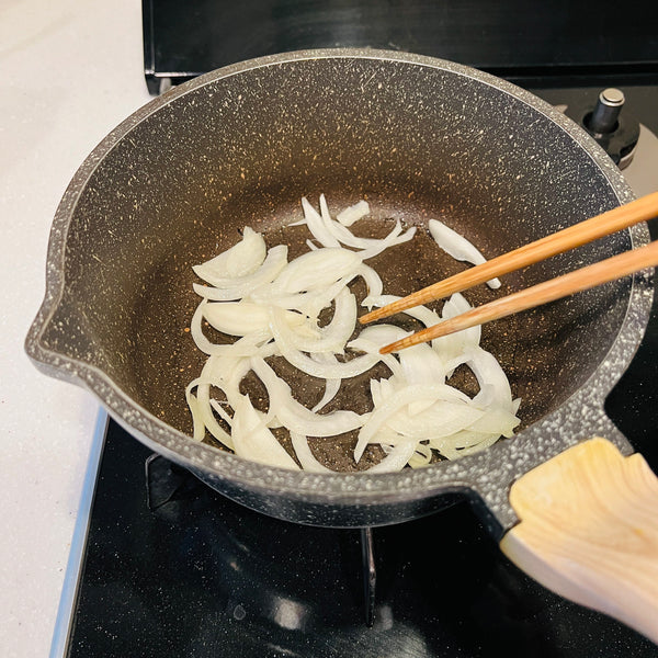 As you might notice, curry udon sauce is thicker than regular soup. To achieve this texture, adding potato starch is a common step, though it can be a bit tricky. It’s important to find the right consistency without making the sauce too thick or gummy.