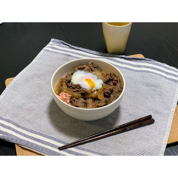 In this recipe, we are going to introduce a version of gyudon served with onsen tamago. Although onsen tamago may seem similar to a half-boiled egg, the egg white is soft and jelly-like, while the yolk is moderately firm. It makes the perfect topping for gyudon!