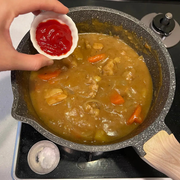At home, Japanese curry typically has a stew-like texture and is served with steamed rice. Many households use block-type curry roux, readily available in supermarkets, which contains all the necessary spices, seasonings, fat, and flour. Making curry is as simple as breaking the roux into portions and adding it to simmering meat and vegetables. This effortless process yields delicious curry with minimal effort.
