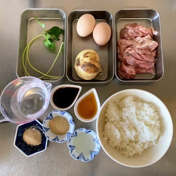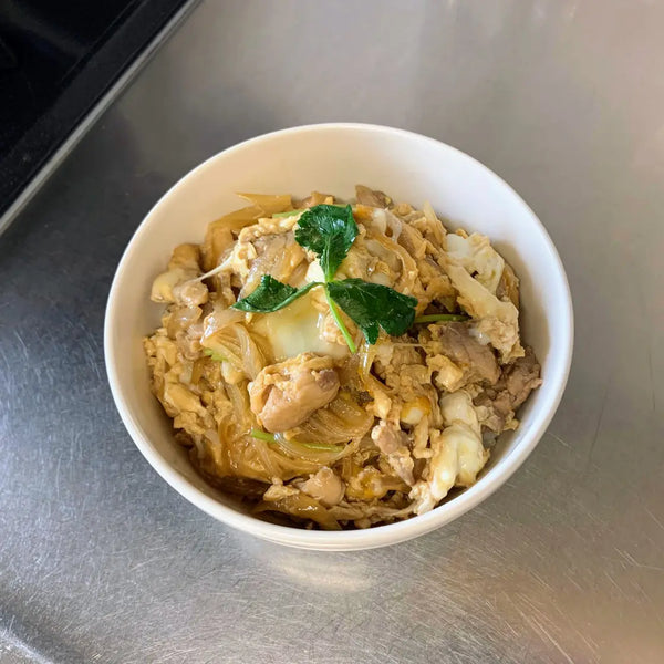Let’s learn about the origins of oyakodon’s name. In Japanese, “oyako” means “parent and child” because it is made of chicken = parent and egg = child. Also, “don" comes from the word "donburi," which is a large, deep bowl.