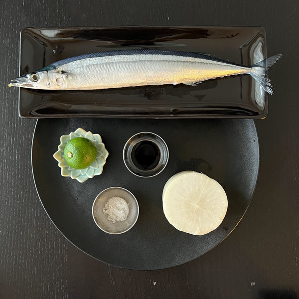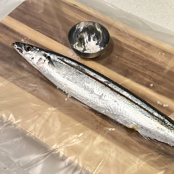 Sanma thrives in the North Pacific Ocean and is often called the "autumn fish" in Japan, as it’s at its most delicious during this season. With its slim, sword-like body, Sanma is written as “秋刀魚” in Japanese, where each Kanji character represents its essence: “秋 (autumn),” “刀 (sword),” and “魚 (fish).”