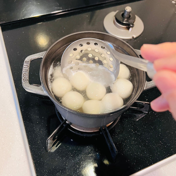 Now that you know a little bit about the background of Otsukimi and how to display Tsukimi Dango, let’s talk about how to make it at home. The main ingredient of Tsukimi Dango is “Joshinko” which is a type of rice flour made from Uruchi-mai (the most popular type of rice in Japan). The main characteristic of Joshinko is that it gives dango a firmer and harder texture. In order to combat this and enjoy mochi softer texture, we will add “Shiratamako” so that the texture of the dango becomes soft, smooth, and chewy. If you can’t find Joshinko or Shiratamako in your local Asian or Japanese supermarket, you can find both of them on our website.