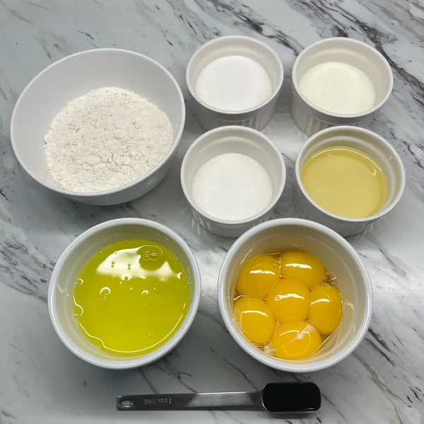 Japanese chiffon cake is like a fluffy cloud of sweetness that dances on your taste buds. A soft, airy cake with a hint of vanilla, creating a flavor symphony that's as delightful as a gentle breeze. What makes it unique is the special dance between the ingredients – a careful ballet of egg yolks, flour, and a secret ingredient: vegetable or rice oil instead of butter.