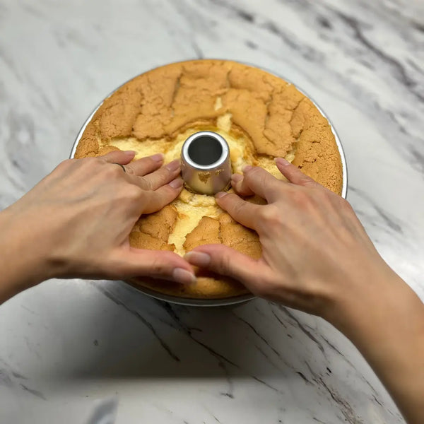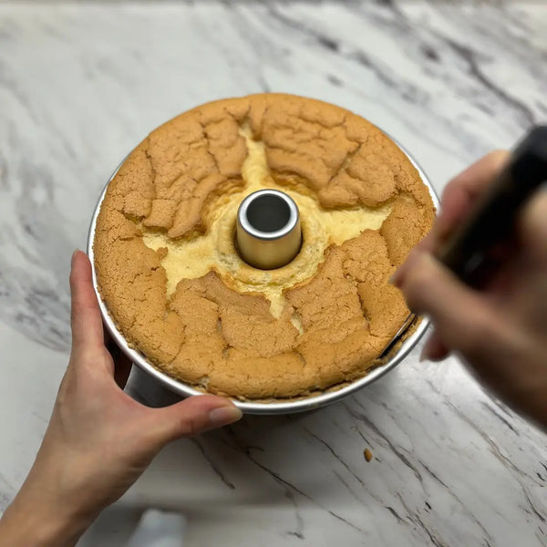 Pouring the batter into the chiffon cake mold feels like you're setting the stage for a culinary masterpiece. The cake rises to impressive heights, and the aroma wafting through your kitchen is pure anticipation. Then comes the cool-down, a quirky upside-down cooling session that ensures the cake keeps its airy charm.