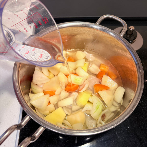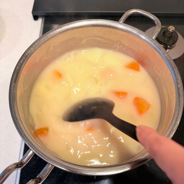 - Stop the heat when adding the cream stew roux: The cream stew roux portions should be added once the boiling has stopped; otherwise, the texture won’t stay silky and smooth.