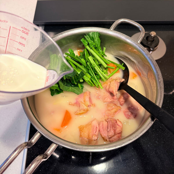Chicken Thigh - Chicken thighs are preferred for their tender texture and umami richness. They hold up well during simmering and contribute depth to the creamy broth.