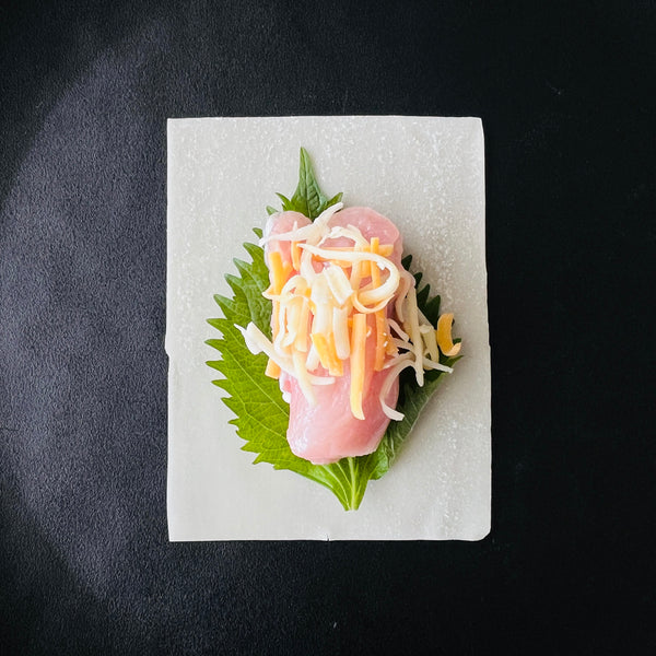 The seasonings used in the recipe are very simple: Japanese pickled plum (umeboshi) and shiso leaf. Each ingredient has its own special flavor, and the combination of these two is quite classic in Japanese dishes. They create a refreshing scent and impart a hint of sourness, making your mouth full of flavor. Additionally, cheese adds mildness, complementing the umami of the dish.