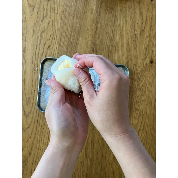 There are many different kinds of mochi in Japan, but the mochi used for making mochi ice cream has a soft and chewy texture. It is also not too sweet. When you take a bite of mochi ice cream, you can enjoy both textures of chewy mochi and ice cream. The sweetness of the ice cream also matches perfectly with the chewiness of the mochi!