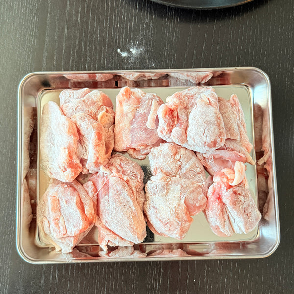 • Pat the chicken dry before coating with potato starch. Removing excess moisture helps the coating adhere evenly and promotes better browning.