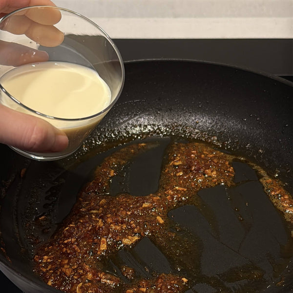 While many recipes suggest serving it with pasta, I recommend enjoying the Japanese version with traditional Japanese staples such as steamed rice and Udon noodles. The rich creamy sauce clings beautifully to the rice and Udon noodles well. To better balance the flavor and to pair well with these Japanese staples, I added Miso as well. It enhances the Umami and mild, savory saltiness of the dish.