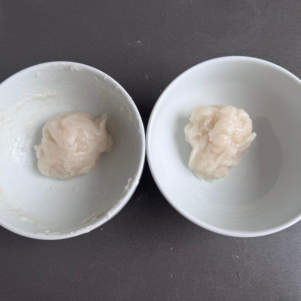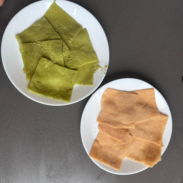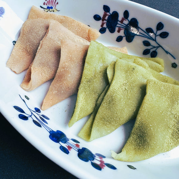 Both joshinko and shiratamako (types of rice flour) are used in making nama yatsuhashi to achieve the perfect balance of texture and consistency in this traditional Kyoto sweet. Each rice flour contributes unique characteristics that enhance the quality of the dough.