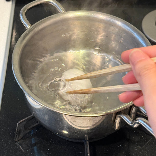 The film actually depicts how to make Ponyo ramen, and I followed the steps shown in the movie. Ponyo ramen is made with instant ramen and some key ingredients that define it “Ponyo ramen”: green onions (scallions), boiled egg and the crucial ingredient, ham. These are items that Japanese people commonly have in the fridge.