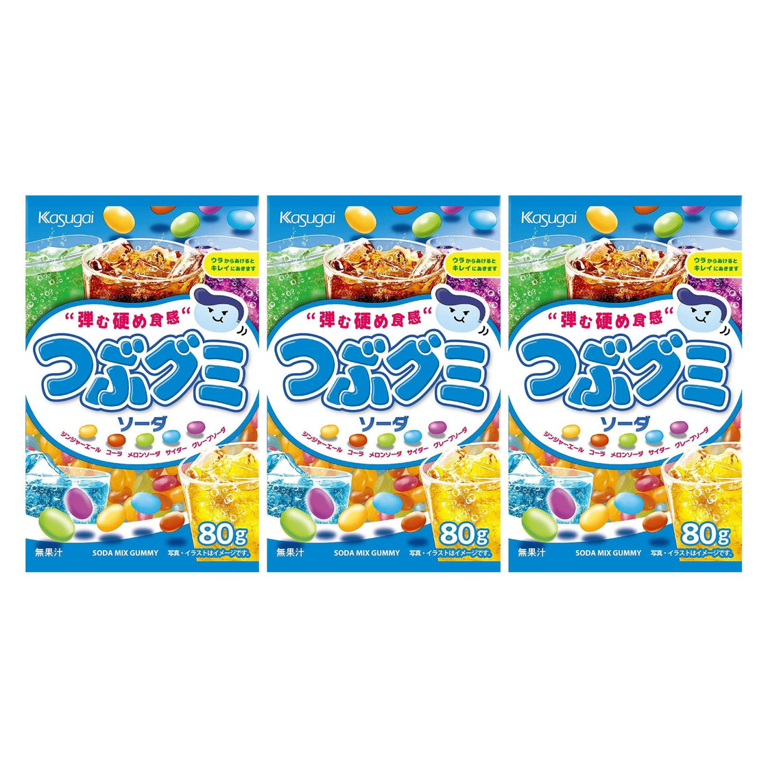 Kasugai Tsubu Gummy Mixed Soda Flavor Gummies 80g (Pack of 3)